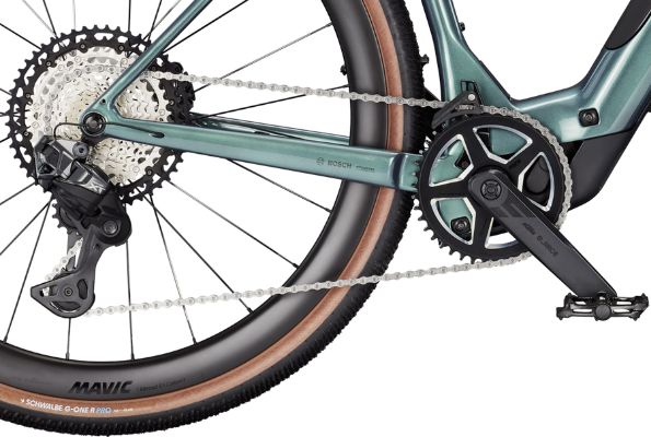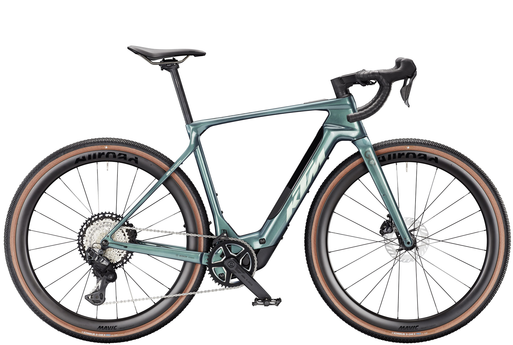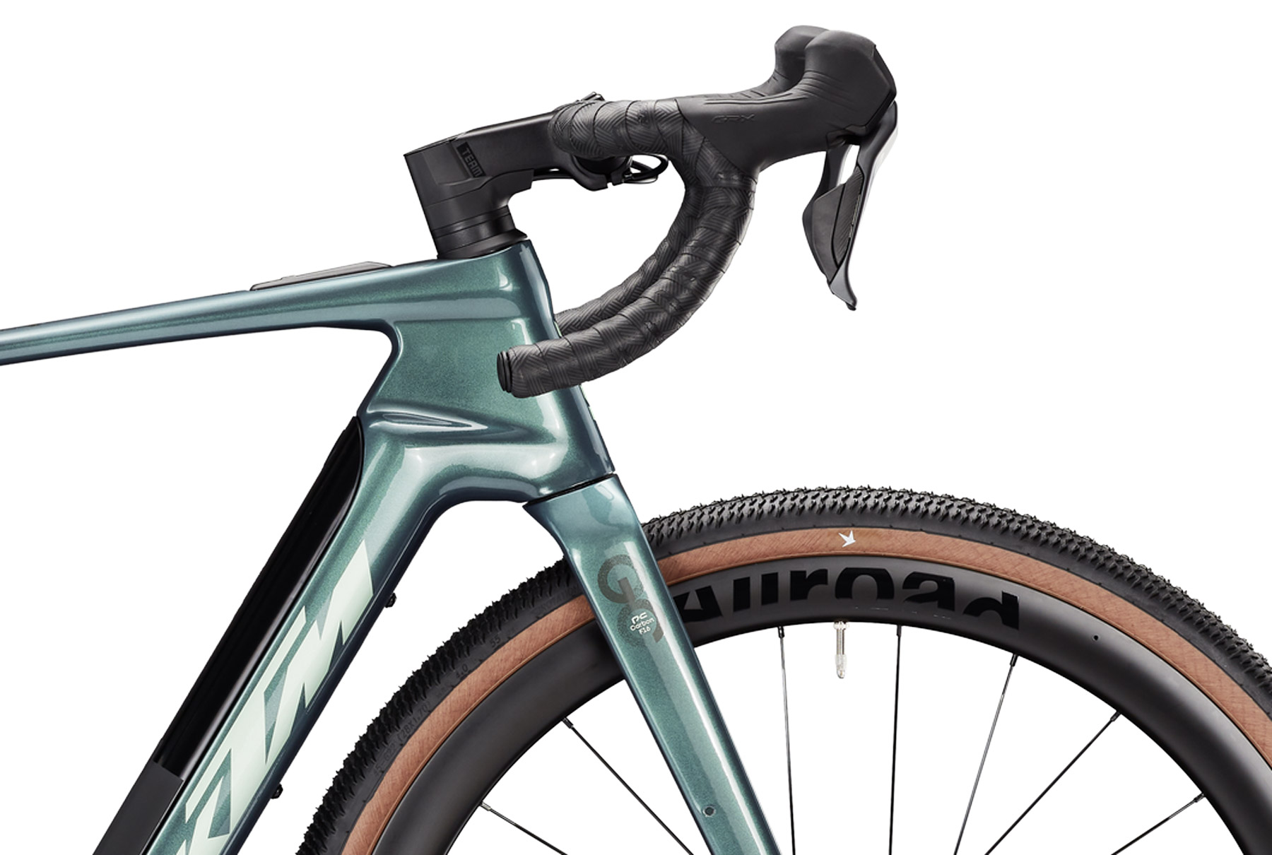 Der premium Carbonrahmen und die Carbongabel des KTM Macina Gravelator SX Prime sind vom Feinsten. Das geringe Gewicht des KTM Macina Gravelator SX Prime wirkt sich positiv auf die Reichweite aus, bis ca. 150 km sind gut möglich, der gewichtsoptimierte BOSCH SX Mittelmotor mit 55 Nm sorgt bei erhöhter Trittfrequenz für Spitzenleistungen von bis zu 600 W und bietet dieselbe Nenndauerleistung von 250 W wie der BOSCH CX Motor, 12 Gänge elektrisch mit dem Shimano XT Di2 Antrieb sorgen für perfekt saubere Schaltvorgänge.