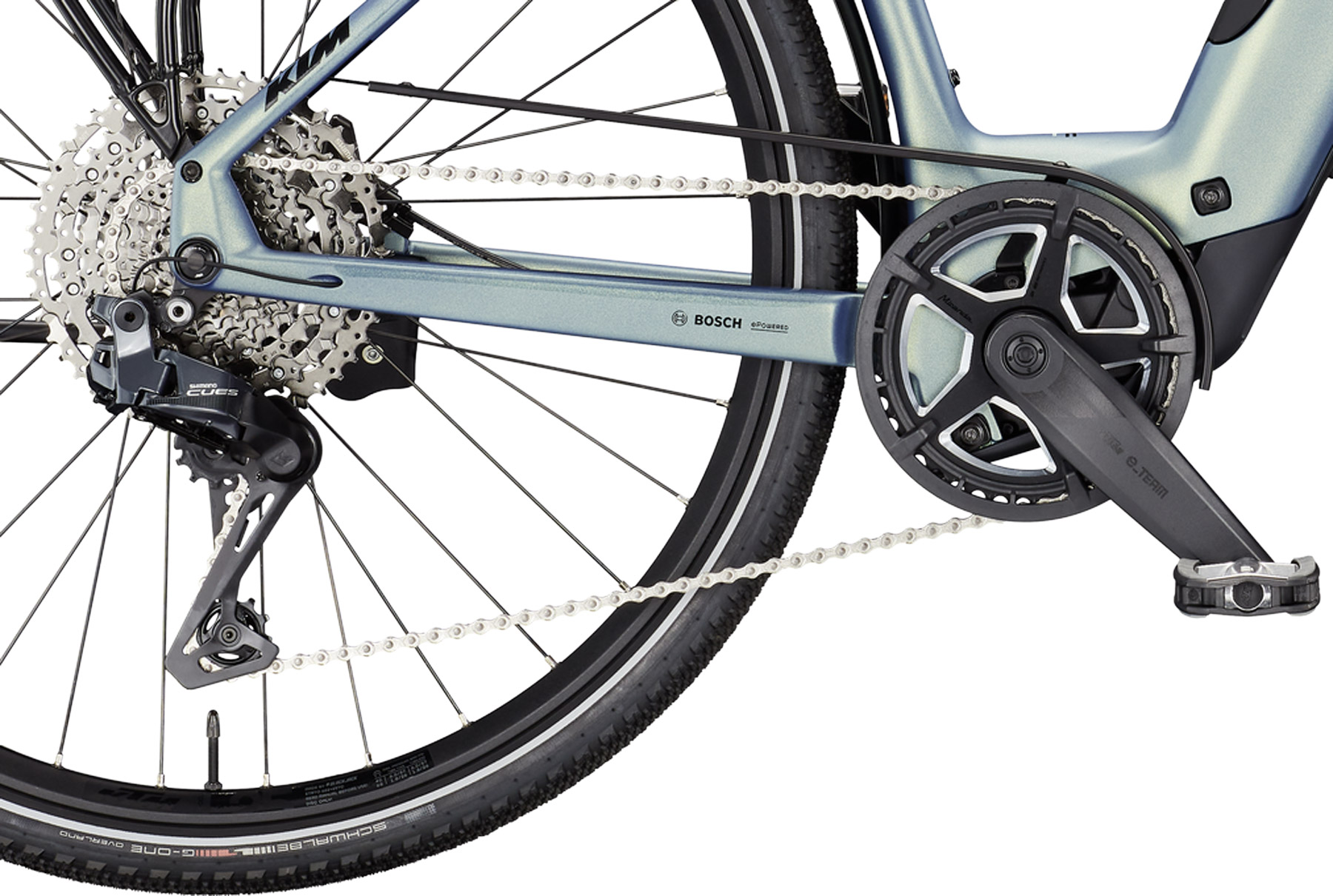 Als Bereifung für das KTM Macina Sport SX Elite Di2 wurde der für e-Bikes besonders gut geeignete Schwalbe G-One Overland SuperGround TLE gewählt, welcher idealen Einsatz für Straße aber auch Offroad bietet und mit hoher Haltbarkeit und sehr guter Kurvenhaftung punktet. Diese Reifen sind auf Shimano Deore Laufräder montiert, welche bei KTM von Hand eingespeicht wurden und ideale Laufeigenschaften bei geringem Rollwiderstand bieten.
