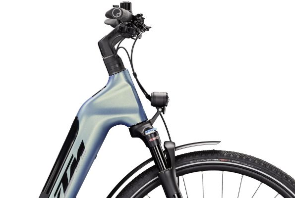 Der leichte Premium Carbonrahmen des KTM Macina Sport SX Elite Di2 wird durch neueste Technologien hergestellt! Herzstück dieser neuen Entwicklung von KTM ist das spezielle Steuerrohr in Kombination mit einem bis ins Detail neu konstruierten Steuersatzes und einer eigens optimierten KTM / Suntour Federgabel. Diese Innovation genannt SLS (Steer-Limitation-System) ermöglicht es, dass der Lenker eine Einschlagsbegrenzung besitzt. Umfallende Räder, zerkratzte Oberrohre, verbogene Schutzbleche, ausgerissene Lichtkabel und überspannte Bowdenzüge gehören somit der Geschichte an. Die erhöhte Scheinwerferposition optimiert die Ausleuchtung und sorgt dafür, dass der Scheinwerfer so gut wie keinen Erschütterungen mehr ausgesetzt ist.
